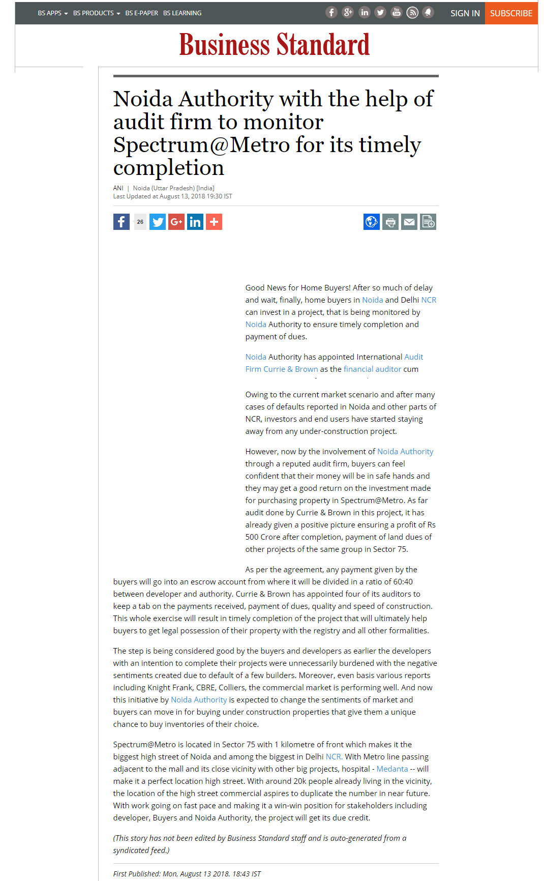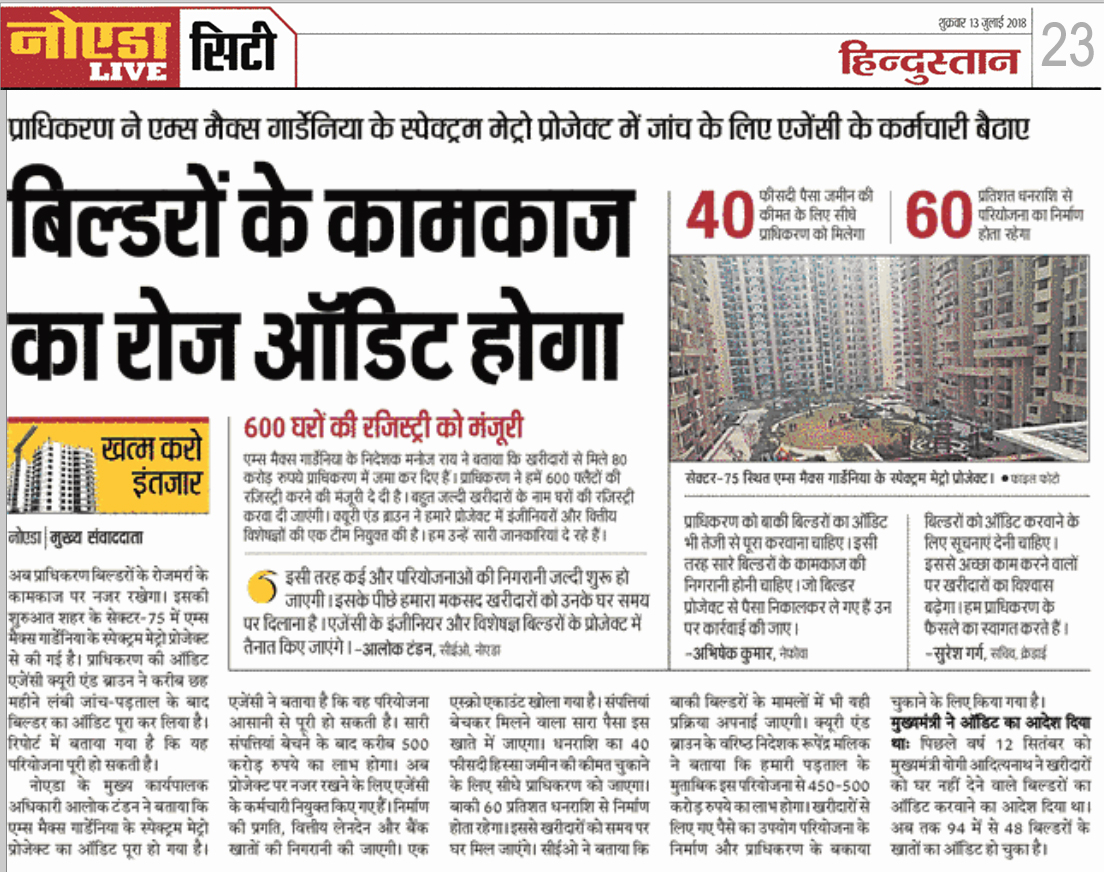 Spectrum Metro II: Project RERA Regd. No. Block (B, C & D) : UPRERAPRJ17035, Block (A & E): UPRERAPRJ427696 RERA Website: www.up-rera.in | 1 Sq.mtr. = 10.764 Sq.ft. Disclosure: All specifications, designs, layout, images, conditions are only indicative and some of these can be changed as per the discretion of the builder/architect/authority. These are purely conceptual and constitute no legal offerings. *T&C Apply
